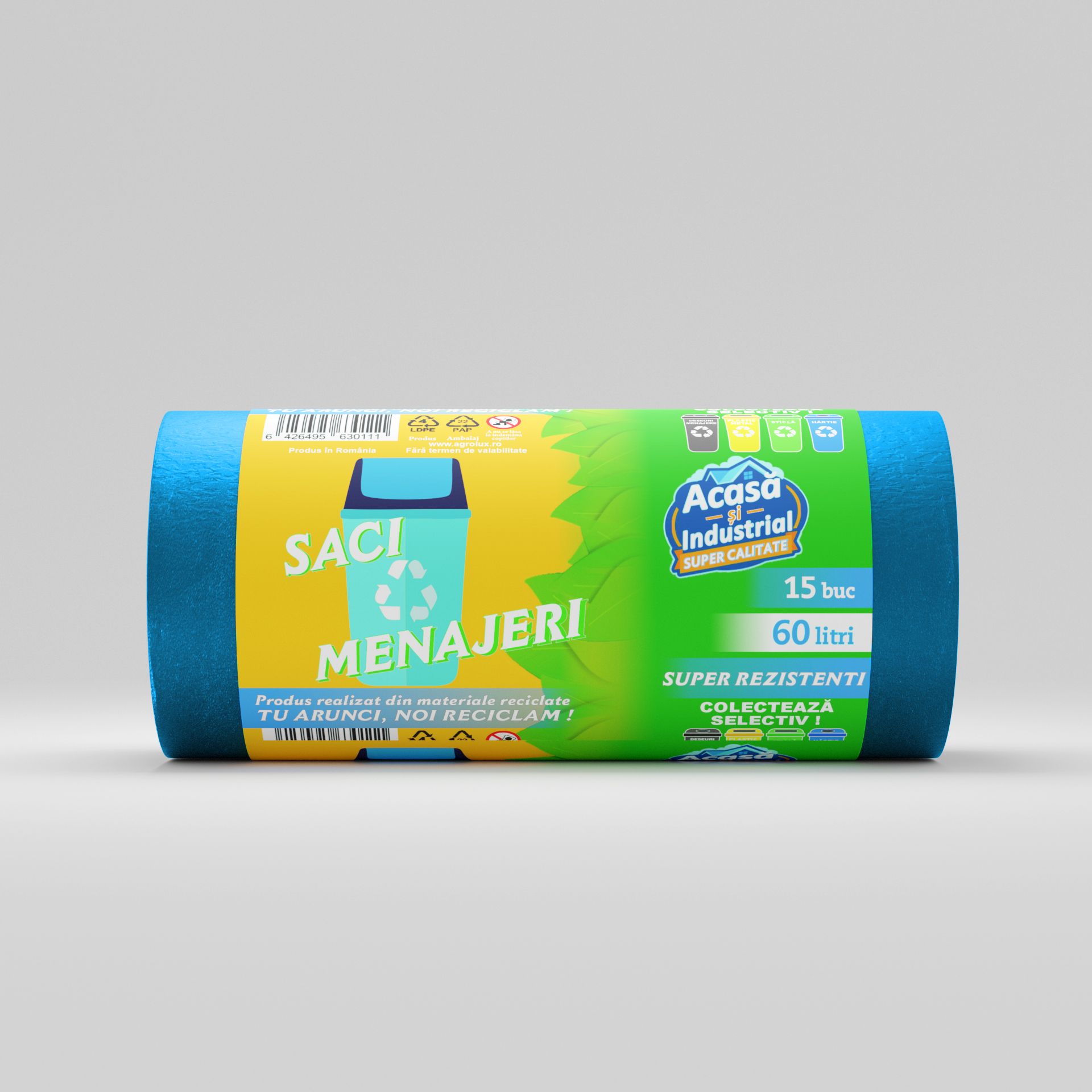 Acești saci menajeri de 60L, de la brandul Acasa și Industrial, sunt creați special pentru a face față necesităților zilnice de colectare a deșeurilor, având un volum generos și un design optimizat pentru durabilitate. Realizați din LDPE de înaltă calitate, acești saci sunt disponibili în role de 15 bucăți, ceea ce îi face ușor de stocat și de utilizat în orice moment.